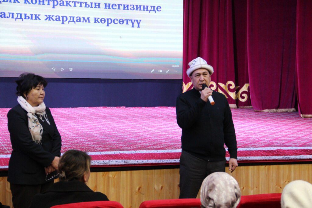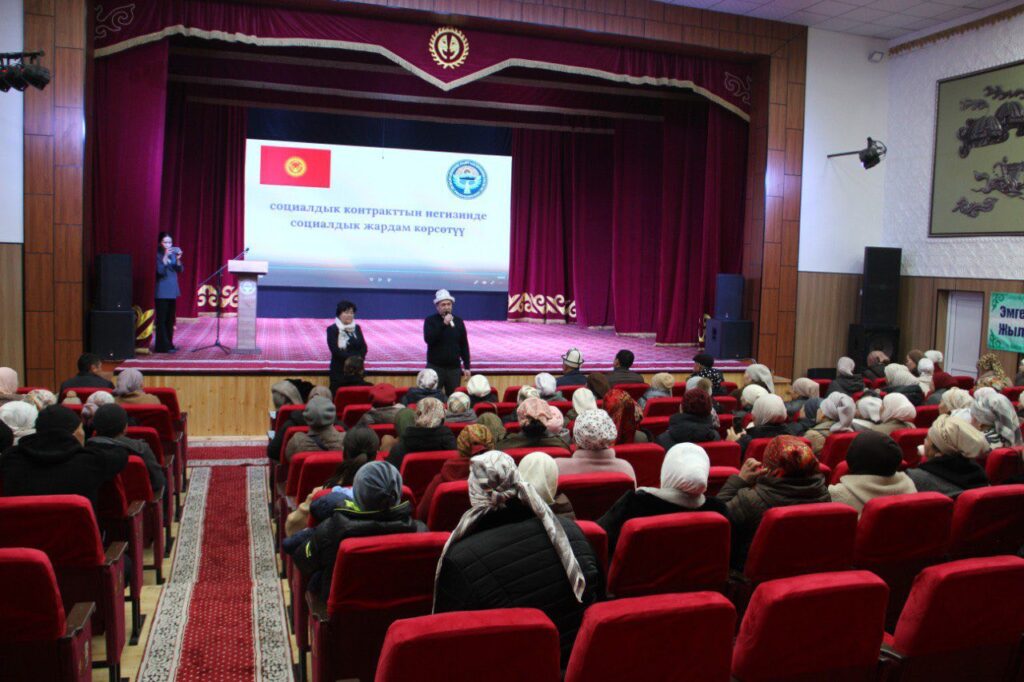Кыргыз Республикасынын Министрлер Кабинетинин 2022-жылдын 15-июлундагы №385 “Социалдык контрактын негизинде социалдык жардам көрсөтүү жөнүндө” токтомунун негизинде 2026-жылга карата районубузга 372 квота бөлүнгөн.Азыркы учурда 150 жаран “Финансылык сабаттуулук” бизнес-планды өркүндөтүү боюнча окуутулар өткөрүлдү. Айыл өкмөттүн жана убактылуу райондук комиссия тарабынан тандалып алынган 139 үй-бүлөнүн долбоорлору жактырылып аларга 150 000 сомдон сертификаттарга ээ болушту.